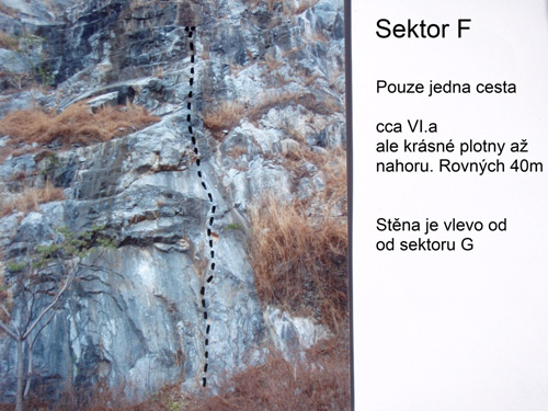 Tak a teď už je to na Vás.  Vzhledem k tomu, že nástupy zarůstají travou a keři, je potřeba, aby tu někdo lezl. Já se v oblasti budu zdržovat od ledna do začátku března, tak to tam prořežu a snad i přelezu, ale pořád tu  být nemohu, takže budete – li  se chystat do okolí Kanchanaburi, přijďte zalézt.