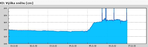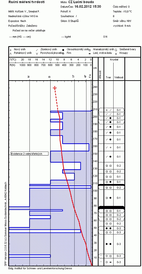 Sněhový profil změřený na Luční boudě 16. 2. 2012 jen tuto situaci