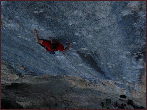 le big zloba mac: Jasně, nic proti Arku, jenže to bylo před deseti, dvaceti lety. V současnosti je to pro mě spíš ztráta času, tudíž za trest. Zmrzku si můžu dát na Václaváku, zaserfovat na Kanárech. Auto mi můžou vykrást na Žižkově, klouzat se dá na klouzačce za barákem. Kamenolomů je kolem Prahy taky dost. Několikanásobně větší význam než objevení super Arco oblastí pro mě bylo objevení Káti na Ruzyni před dvěma lety. Jí vděčím za podporu při lezení, za precizní naplánování výjezdů, podílení se na všech možných náladách a prekérních situací. Za trpělivost při objevování nových skal. A též samozřejmě kámošům, co se mnou dobrovolně trpěli v zaprášené pazderničce a při nikdy nekončícím nacvičování vynýtovaných nesmyslů.