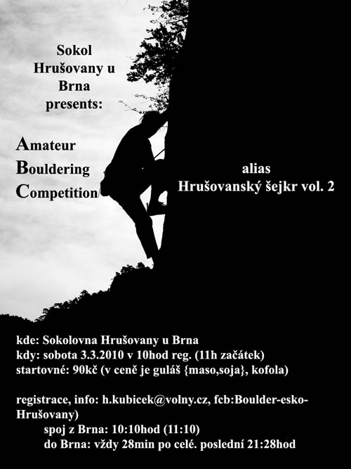 ahoj, závody nestihnu, ale je možno sem hodit nějaké fota bouldrovky, zalézt bych přišel,díky:)