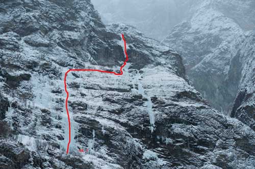 Surprice (WI6+/M8 350m Papert, Senf 04/02/12) Litldalen Sunndalsöra