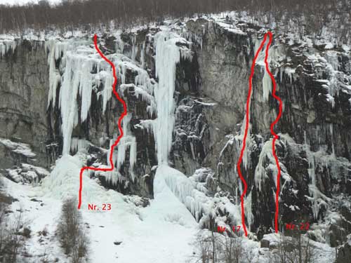 Power House 17. Rage against the Maschine (M7+ 70m). 22. C3 (M8+ 70m). 23. Perly on Ice (WI 6/M9 70m)