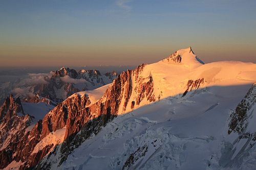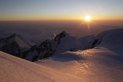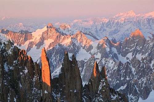 při výstupu na MM zachycen západ slunce na Šamonských jehlách