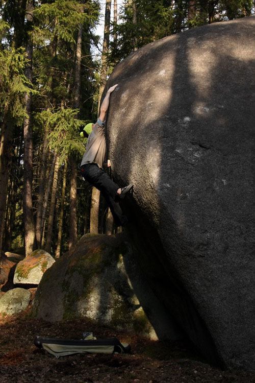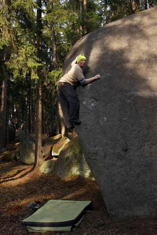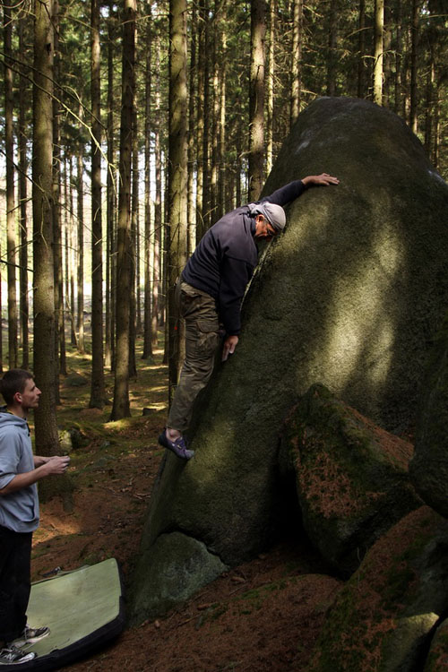 Boulderů je přes 400 samostatných linií plus určitě nějakých sto variant. Poměrně na poslední chvíli jsme přišli o velmi atraktivní balvany Bábu a Dědka. Tam mělo být MČR, bude jinde, nevadí. Aktuálně  stále ještě doháníme fakt, že tam nejsou vysloveně Velké linky, pár jich nakonec taky bude (za poslední tři návštěvy jsme udělali 110 boulderů). To, že tam nejsou chyty jsem psal už mnohokrát. Věřte, že bouldering bez chytů je srandovní.