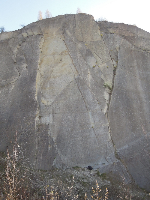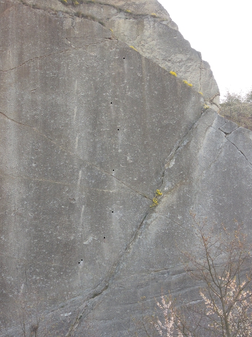 No ještě by mohlo vést něco na ty krátké mírné převisy ve křoví dole naproti nástupům do spodní levé plotny. Podrobně jsem to neskoumal, ale někde by to bylo na krátkou cestu s 1 až 2 bh..