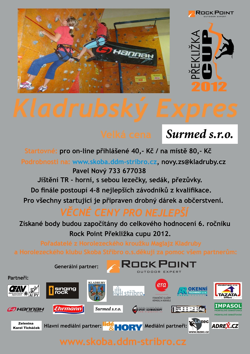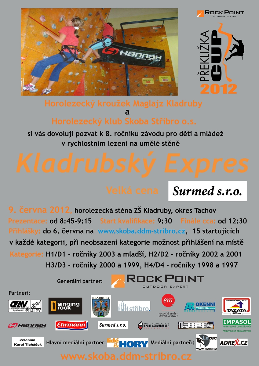 smallPozvánka a propozice na Kladrubský expres - velká cena Surmed s.r.o.- horolezecké závody mládeže v lezení na rychlost.