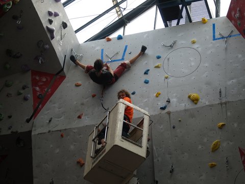 Následoval maraton pro stavěče, kteří museli sundat dvě kvalifikační cesty a připravit finálovou pro ženy. Příště míň chytů! (poznámka č.1 autora – stavěče )