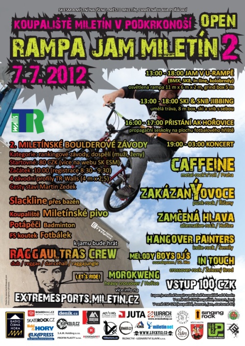 extremesports.miletin.cz. Prvního ročníku se zúčastnilo celkem 27 závodníků. Doprovodný program: slackline přes bazén, možnost ponoru s místními potapěči, závody v u-rampě, jibbing na lyžích a snowboardu, parašutisti, fotbálek, badminton, after party - vystoupení 6ti kapel.