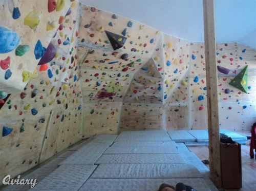 Pravda je, že jsme trochu té prehistorie chtěli, aspoň co se týče atmosféry - kdo zažil počátky umělých stěn, jako my, pochopí. Bouldrovky teda tenkrát byly naklápěcí deska a hotovo, co si pamatuju. Ještě si přihřeju polívčičku: stěnu stavíme svépomocí, jen vlastní rozpočet, vše si děláme sami včetně webovek, stěna ještě není napískovaná atd., to se dotáhne. Takže chápu, že to asi působí dle fotek trochu amatérsky. Spíš přijďte vyzkoušet lezení, zajímá nás Váš názor!