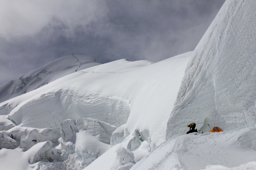 pohled na C3 směrem na Pik Čapajev, 5 900 m n.m. (pouze předvrchol)