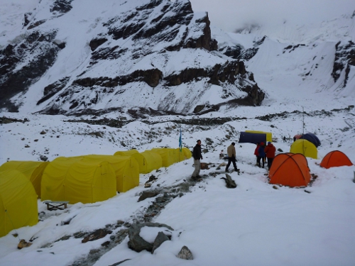 Na tuto horu se využívá místní agentura (Ak-Sai Travel), která nabízí malý (800 eur) a velký (1400 eur) balíček služeb. My se nakonec rozhodli po různých úvahách a se slzou v oku pro velký balíček. A zpětně si myslíme, že i když nás tahle sranda stála skoro o jednu výplatu navíc, investice se vyplatila. Součástí velkého balíčku totiž byl transfer z letiště na heliport, ubytování v 5* hotelech, let vrtulníkem bez limitu hmotnosti, ubytování ve stanech v BC s plnou penzí. Jídlo v base campu bylo opravdu výborné.
