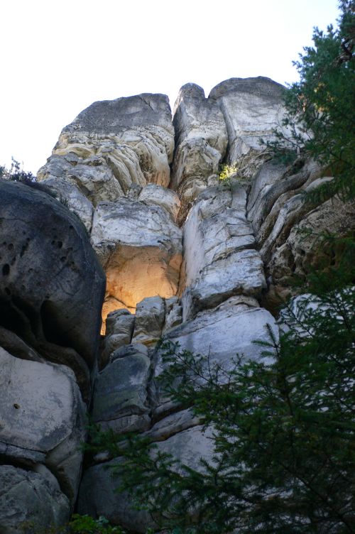 Osměleni se rozhodujeme pro Egyptskou hranu VIIb na Sfingu. Pod nástupem potkáváme místní znalce. Úctyhodný věk a kotníkové lezečky jako z muzea ve mě budí respekt. Dostáváme cenné rady, volíme na doporučení variantu za VII a po čase chytáme poslední paprsky na vrcholu. Ani jednomu z nás se nechce dolů.