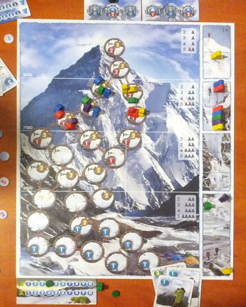 Pěkná a drsná desková hra s vysokohorskou tématikou. Ačkoliv máte 100% danou předpověď počasí na 6 dní dopředu, máte pouze omezené možnosti pohybu (náhodný výběr 6 karet, uplatnit jdou jen 3 v daném kole). Hra vás naučí, že včas sestoupit znamená hranici mezi přežít a jen koukat do konce hry.