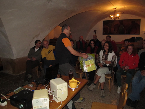 Decentní zahajovací večírek jsme zrealizovali u Peteho v Tunelu a po předání pozorností od partnerů meetingu (TENDON a ROCK EMPIRE) jsme zahájili představením oblastí, v nichž se poleze – tedy Křižák, Ádr a Teplice.