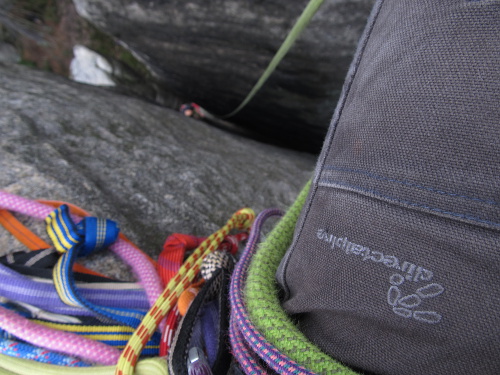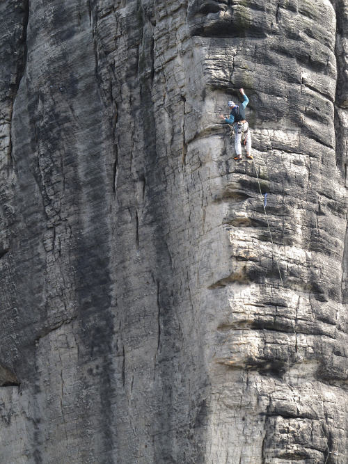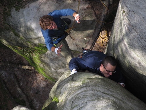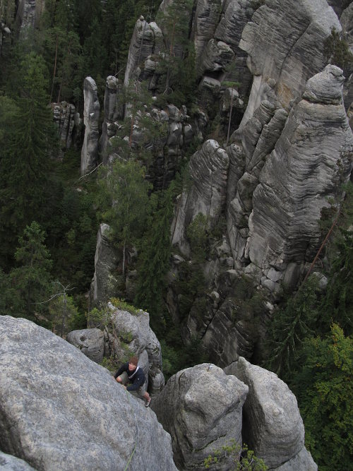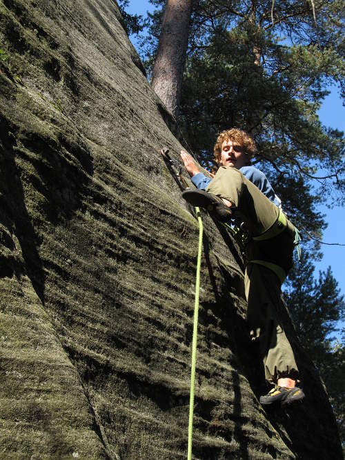 Odpoledne se porůznu potkáváme v Ádru, kde Zbyšek s Michaelem, Frenkem a Stijnem vylezli na Starostu, Tom protáhl severské kluky na Milenku cestou Přes Fichtli a byla docela sranda poslouchat jak je při jejich vyvádění navigoval. No a my jsme vylezli Mileneckou cestu s variantou do Pilířové na Milence a přeskokem na Milenku.