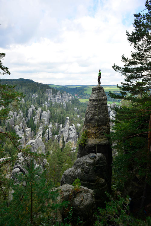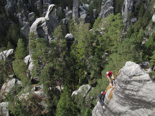 smallV polovině září (16.-23.9.2012) hostily Adršpašsko-teplické skály a přilehlý Křižák mezinárodní lezeckou společnost: Sedmnáct lezců z Finska, Švédska, Polska, Rumunska, Holandska a Belgie sem přijelo na pozvání Českého horolezeckého svazu, seznámit se s lezením na slavných a současně obávaných českých píscích.