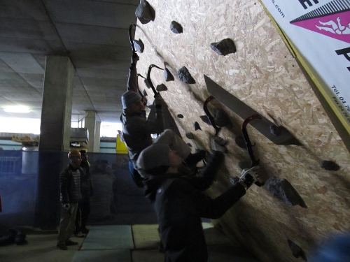 Semifinále chlapů vedlo jako první cesta do nové struktury. Začátek trochu podobný kvalifikační cestě, jen se ztíženým krokem do prvního ledového špalku. Pro řadu borců, byl největším problémem převislý dřevěný kmen, kde si moc nevěděli rady se zasekáváním do dřeva a hlavně odhadem co to vydrží. Několik závodníků se taky vyautovalo seknutím do červené čáry, mimo jiné k velké škodě i Janez Svolšak ze Slovinska, který by se jinak svým výkonem určitě do finále podíval. Jediná zbývající český zástupce Radek Lienerth dolezl do nové struktury, zapnul ještě dvě expresky a pak došel jak čas tak hlavně síla. Zatím nejsou ještě celkové výsledky, takže to bude někde kolem 15. místa.