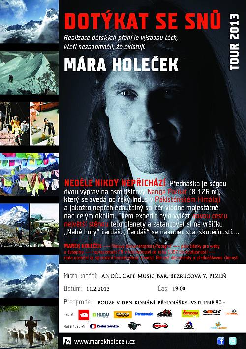 Téma: NEDĚLE NIKDY NEPŘICHÁZÍ - přednáška je ságou dvou výprav na osmitisícový NANGA PARBAT (8 126 m), který se zvedá od řeky Indus v Pákistánském Himaláji a jakožto nepřehlédnutý solitér vládne majestátně nad celým okolím. Cílem expedic bylo vylézt novou cestu NEJVĚTŠÍ STĚNOU této planety a zatancovat si na vršíčku "Nahé hory" čardáš. "Čardáš" se nakonec stal skutečností ...