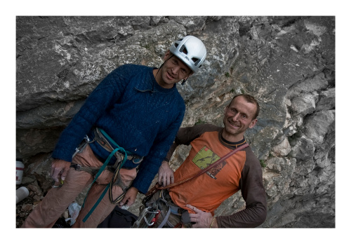 Počasí přeje (ne, že by na něm až tak záleželo, pro neznalé Kareše – on je doslovným ztělesněním fráze “kde je vůle, tam je i cesta”) a dvojici se v mžiku daří navrtat tři nové cesty obtížnosti 7a-, 7c.