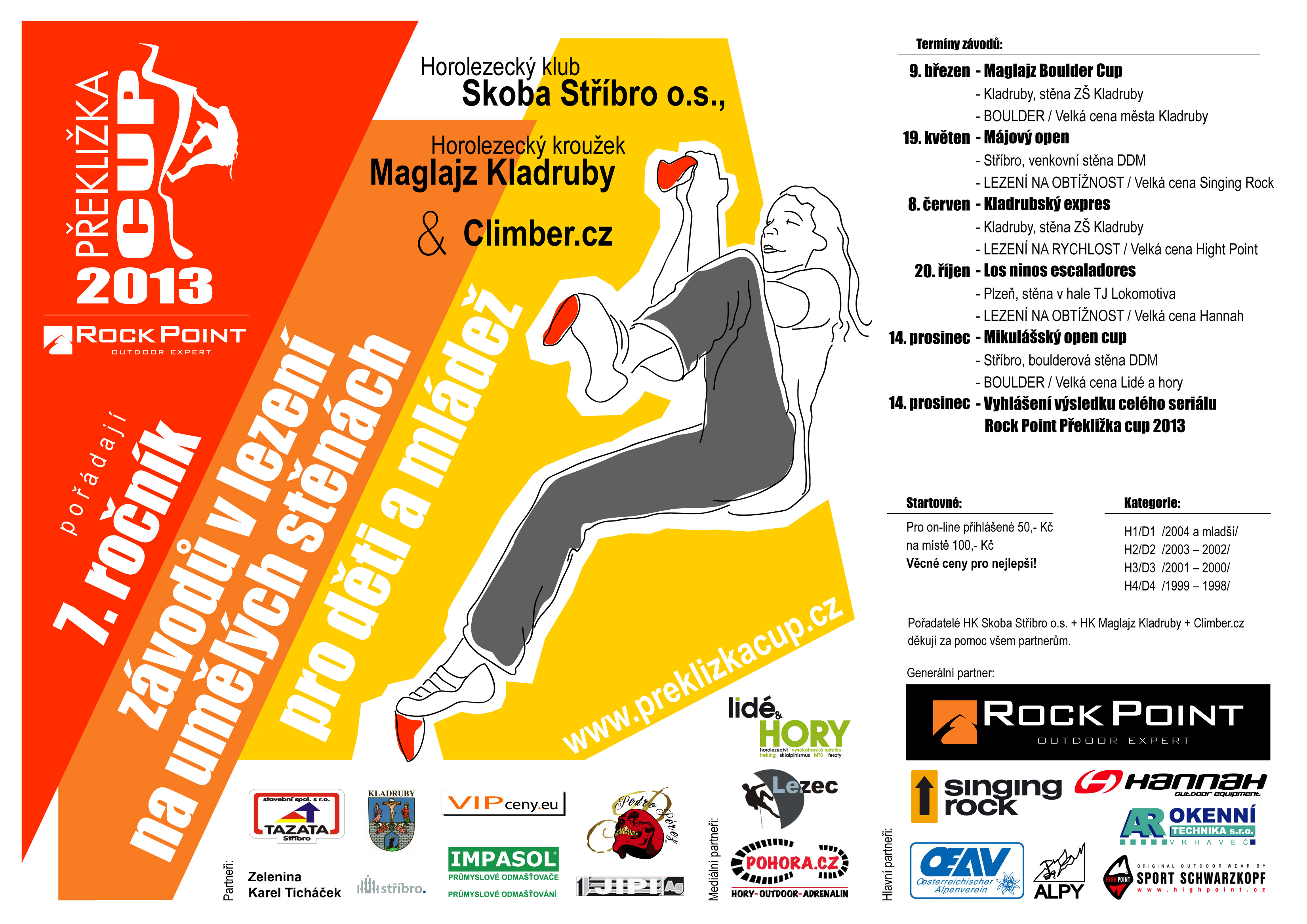 Jako první závod letošního seriálu "Rock point Překližka cup 13" závodů dětí a mládeže v lezení na umělých stěnách startuje populární Maglajz boulder cup - velká cena města Kladruby - horolezecké závody dětí a mládeže v boulderingovém lezení