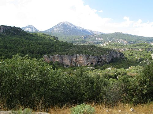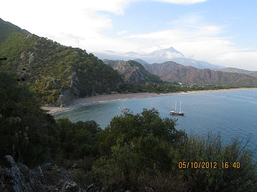 Celkově pátý den našeho zájezdu si pronajímáme auto a vyrážíme na jih, vstříc oblasti Olympos. Ta je asi 100km vzdálená a mezi její výhody patří, že je přímo u moře (jediná věc, která nám scházela v Geyik). Po cestě ješte navštěvujeme antické ruiny ve Phaselis, antickém přístavním městě ze 7.st. př.Kr. Ani jinak se moc nenudíme, kontrolka na palubní desce nám totiž neustále červeně signalizuje nějaký problém. Popis ve smyslu „FREN. HIDR. ….. DURDURUN“ nám mnoho neříká, ale ze slov „hidr.“ a „dur“ (to je napsáno na šestihranných dopravních značkách namísto prostého stop) a také toho, že auto moc nebrzdí, usuzujeme na poruchu brzd. To, jestli nám jen nefunguje posilovač brzd (středně velký problém), nebo nám teče brzdová kapalina (velký problém), nevíme. Aby toho nebylo málo, má většina tureckých řidičů poměrně zajímavé chápání některých dopravních předpisů – se  silným akcentem na vynalézavost a osobní svobodu. Jeden náklaďák se nás ostatně hned za Antalyí pokouší na spojení dvou jízdních pruhů vytlačit ze silnice.