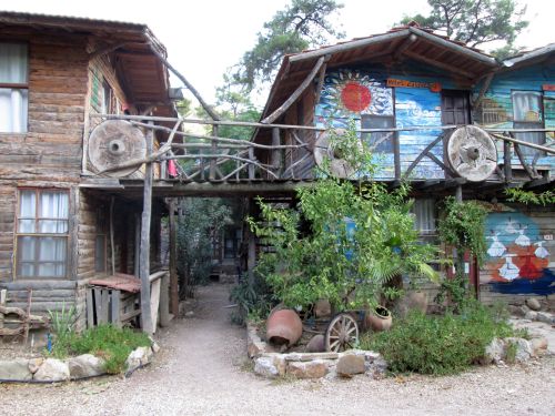 V Olymposu bydlíme v kempu Kadir's Tree Houses. Za 20 lir na noc, pěkná chatička, polopenze, odporné záchody a panorama velmi spektakulárního kempu ve stylu hippie. Některé dřevěné chatičky jsou postavené na kmenech stromů a ostatní jsou alespoň barevně pokreslené nebo popsané hesly propagujícími vzájemnou lásku a porozumění. Součástí kempu je i jeden bar a jeden noční klub. My si ale užíváme především tu polopenzi, vzpomínka na tvrdou dřinu za plotnou v Geyikbayırı je stále ješte příliš živá.