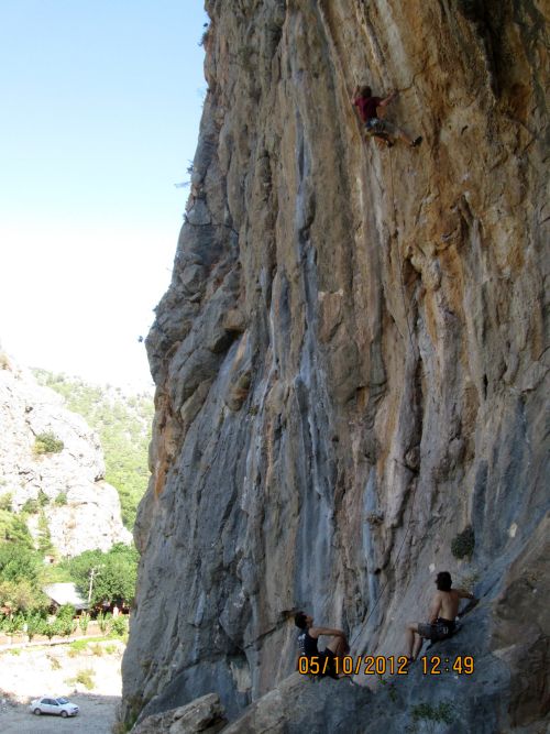 Po odpolední koupačce u moře dorážíme k večeru do kempu Climbers Garden v největší turecké lezecké oblasti Geyikbayırı. Na české poměry je to oblast veliká, vápencové útesy se táhnou kam až dohlédnete. Najdete zde jak cesty po super krápníkách a tufách (často převislé), tak i perfektní cesty po ostrých lištách. Kvalita skály je povětšinou prvotřídní. Začátkem října je zde bohužel pořád dost vedro a nedá se lézt na slunci, takže jsme se většinu času schovávali v sektoru Trebenna, který je ve stínu celý den, nebo jsme dopoledne lezli v kolmicích blízko kempu (třeba Anatolia) a potom jsme se zdekovali do přilehlých jeskyní (Magara). Místní klasifikace je spíše měkká, i když u lehčích cest občas hodně ulítne. Jištění je super, blízko u sebe a často narazíte na borháky. V cestách od 7a výš občas bývají navěšené erární presky, což potěší, když si chcete cestu beztrestně vyzkoušet.