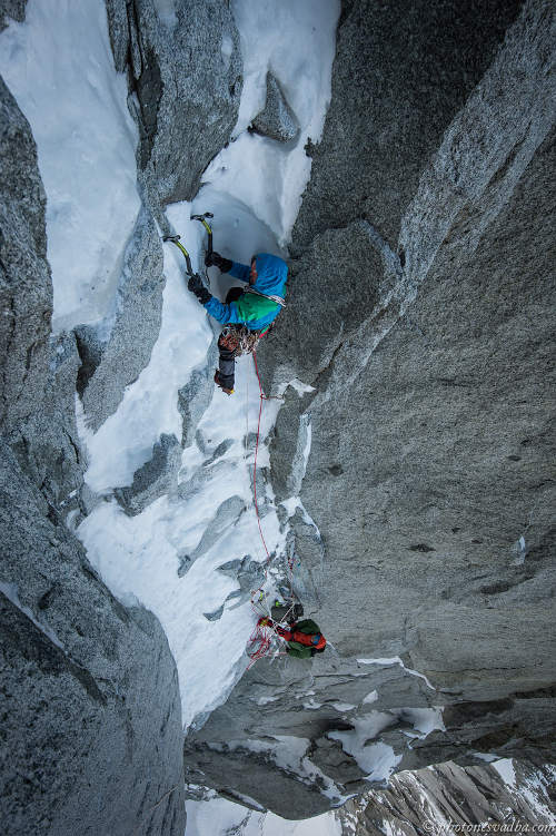 Aiguille du Dru, hora v masivu Mont Blanku ve francouzských alpách, co leží hned vedle Chamonix. Jehla v názvu asi bude o něčem napovídat. Snad to nemá pro frantíky spojitost s "dirty needle", jak řikaj jointu s tabákem amerikan gringos. Ti se zrovna o volný přelez direktu severního kuloáru loni pokoušeli, což hezky Griffith popisuje v článku na alpineexposures.com, kterej přišel v mailu i s předběžnym bojovým plánem od Bače před týdnem.