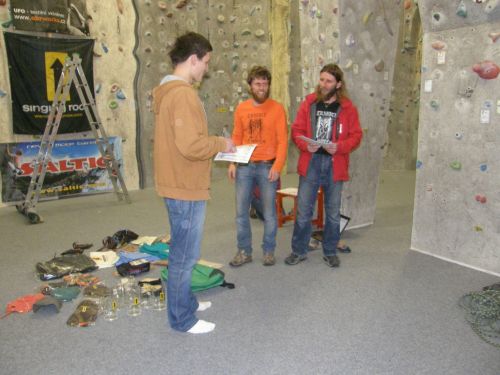 Přibližně v 19:00 skončilo lezení. Vylákat některé od piva na vyhlášení stálo jistou námahu, nicméně v půl 8 jsme vyhlásili co se dalo.