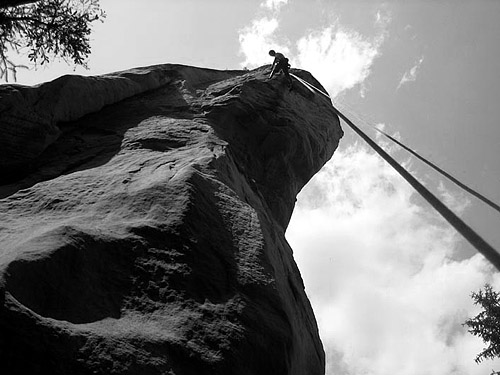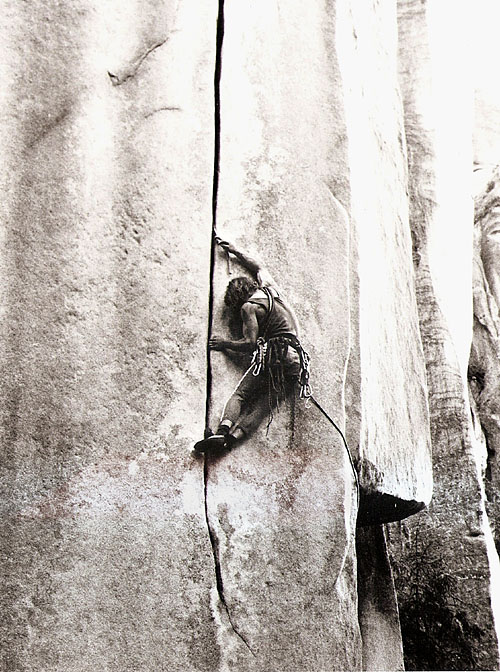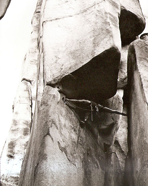 Také jsem vždycky toužil po moderní identitě , přiznám to na rovinu – tak trochu být snobem, ale nějak to nešlo dohromady s tím, že lezu rád hlavně na píscích. Důvod nesouladu je je jasný, drsná hornina, různé škvíry - spárokomíny šukacího charakteru, nedovolují člověku odít se v uhlazený a barevný šat, jež by demonstroval příslušnost k výše zmíněné skupině. Písek je zkrátka spíše taková proletářská záležitost (slovy ex-prezidenta – levičácký sport). Například v Ádru nepotkáte příliš často úhledně oděné lezce. Vrcholem extravagance v rámci možností byly kdysi dávno „sněhobílé“ doktorské kalhoty či pepito (mecké) řeznické.