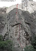 Lezení zde se nám líbilo, krajina je velmi zajímavá, stěny dobré kvality, avšak asi i lezec pohodář by během dvou dní vylezl vše, co tu je. Proto jsme večer zatroubili k ústupu a vydali se o několik desítek km dále do kaňonu Noravang.