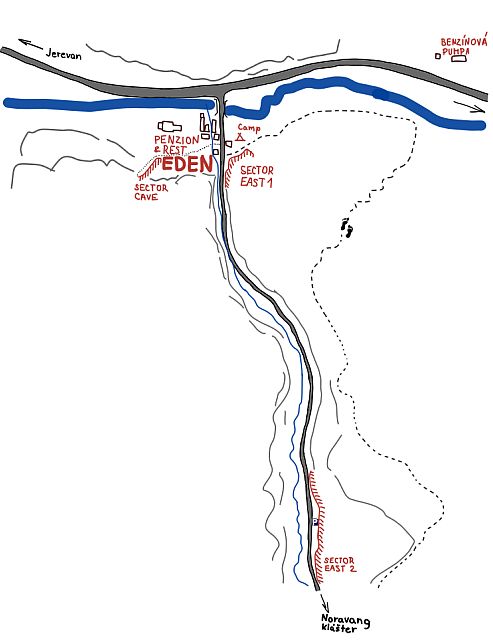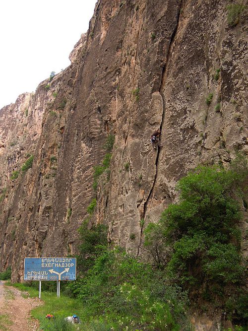 Prvního dne nás náš průvodce a hlavní organizátor setkání Mkhitar vzal na Jerevanské skalky v Hrazda Gorge. Vzal nás tam hlavně proto, abychom se seznámili s místní malinkou lezeckou komunitou.