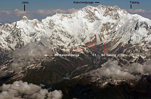 Samotný trek na Yalunský ledovec do monumentálního amfiteátru Kanchenjungy, Kumbakarny, neboli Janu, Kabru a včetně našeho cíle Talungu, je zaručeně hotovým očistcem, pro toho, kdo nenávidí chození. Jedná se o jeden z nejdelších přístupů pod kopec, který znám. Samotné handrkování s nosiči a pochod do BC (5100m.n.m), nám zabral bezmála šestnáct dní. Nebylo času nazbyt a tak následná aklimatizace, byla na pořadu hned druhý den po našem příchodu. Cíl zněl jasně, výklus normálkou na Talung, do výšky někam nad 6500 metrů, dvakrát se tam vychrupnout a zároveň si prohlédnou tím náš případný sestup při úspěšném dolezení pilíře.