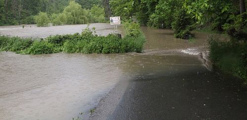 Nedělní ráno a zklamání. Prší, Lužnice pomalu natahuje svá kalná hladová ústa blíže a blíže ke stanům na loučce, takže raději balit... Na lezecký program už není ani moc pomyšlení, i když chuť by byla. Jenže voda stoupá, jediná příjezdová cesta od Tábora je nízko u vody a představa, že tady máme i děti na vozíčku.... Suché (no, hm) oznámení kohosi z místních: "Pánové, na cestu popadaly stromy a také skála, odjet se nedá..." Ten...! Takže mu to nestačilo. Pár chlapů sedá do auta  jede vyhodnotit situaci. Nevypadá to dobře. S obrovskými balvany na cestě u Benešova mlýna (jehož prostorami se už plazila voda) jsme si ještě tak tak poradili. Stejně si myslím, že to byla zase cílená provokace toho nahoře, nějak ve smyslu “Chtěli jste skálu holenkové? Tady máte!...”. Ale o kus dál s popadanými stromy jsme už hnout nemohli. Záchranou byla lesní cesta vedoucí od Benešova mlýna nahoru, kterou už někteří sjeli, když hledali v pátek večer Harrachovku (navigace, no jo navigace....). I když byla dost rozbitá a valila se po ní voda, majitelé vozů 4x4 víceméně v pohodě vyjeli nahoru, ostatní s rozjezdem a s omlácením spodků aut pak taky. Ti, co trochu zaváhali mohli ještě mluvit o štěstí, že také odjeli. Spadly totiž další stromy, před touto jedinou únikovou cestou... Naštěstí se včas prořezaly a dalo se jet. A voda stoupala a stoupala... A jak to bylo dál, to všichni víte. Jak to bude, to asi ne. Ale bude a věříme, že jednou to vyjít musí. S krásným (tzn.suchým) počasím, s vyhřátou skálou, …