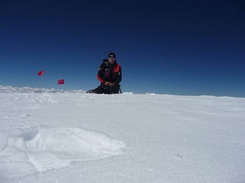 Na vrcholu je hrozná zima, tak se tam moc nezdržujeme. Necháváme všechno ve stěně a frčíme dolů. Máme toho dost, potřebujeme rest day. Tyhle výškové práce v pěti tisících nám dávají celkem zabrat. Rest day je, co se počasí týče, nejhorší den z celého týdne. Je zima a sněží. Béda se přesouvá k nám pod stěnu. Využíváme s Bédou lepší bivak v nejspodnější části stěny. Je to taková útulná jeskyně, kam nefouká a nesněží.