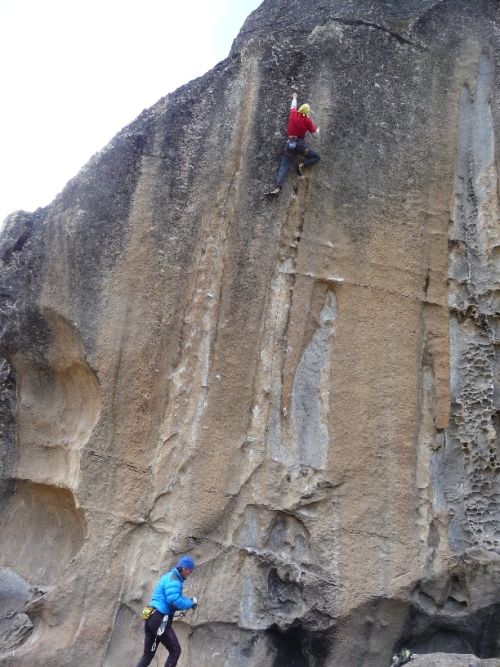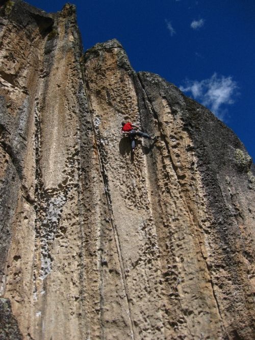 Probuzení do slunečného rána je pozitivní, stejně jako fakt, že je mi lépe. Brzy ráno jdu s Ondrou makat do stěny. Žímarujeme na první štand. Do cesty svítí slunce, Ondra dodělal druhou délku. Je to parádní plotna za 7b+. Další dvě délky dělám já. Chvíli mi trvá, než se rozhýbu. Lezení je nádherné. Plotny, lišty, rajbáčky. Vrtáme většinou z volné pozice, což je pro mě celkem traumatický zážitek. Levou upocenou rukou žmoulám miniaturní oblinku, nohy na tření, pravou rukou vytáhnout vrtačku. Hypnotizuju vrták, jestli už je u rysky, levá ruka kontinuálně vyjíždí z oblinky, adrenalin stoupá, Ondra ze štandu povzbuzuje. Rychle nýt, kladivo, dotáhnout, sednout (úleva „jako prase“), vyzout oteklé nohy z lezeček a pak všechno znovu o osm metrů výš.