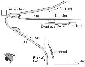 Tip: Nepokoušejte se projít ze sektoru Jouanne do centrálních stěna nebo naopak. Cesta je trnitá a neschůdná, přestože je to na dohled. Raději to obejděte po silnici.