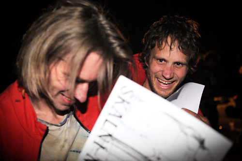 Soumrak, malo svetla. Mrzute, svitilny mame samozrejme mimo. Stejne musime spechat, mame strasne malo sekund. Mrstne svistime mezi stromy. Mame stanek, multifunkcni svatyni mimoradneho Svijanskeho moku. Sosame mlaskajice slasti. Mlhave smysly, masakr.
