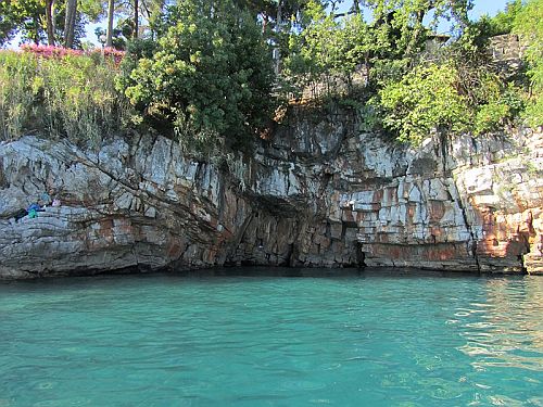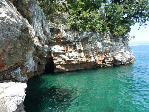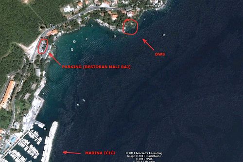 Kolem moře vede cyklo/pěšší cesta a když půjdete od mariny v Ičići směrem na Rijeku, tak skály jsou cca 200m za pláží pro psy.
