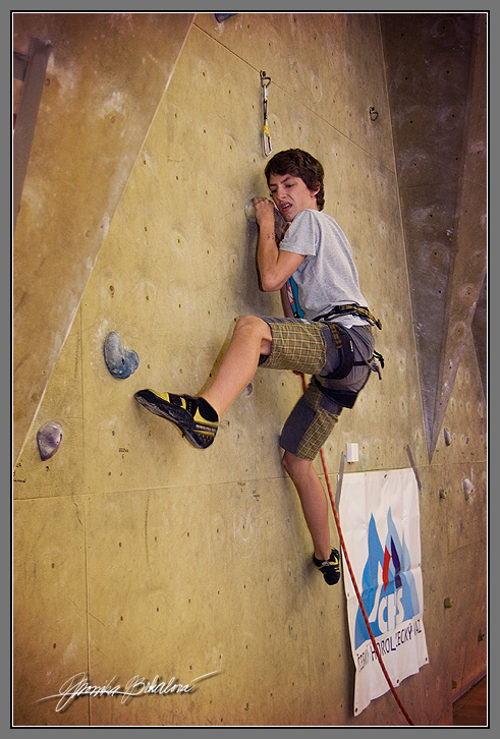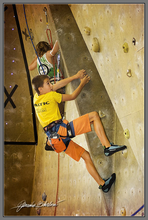 Finále se odehráválo na malinko upravených kvalifikačních cestách. Nejmladší lezli zelenou čtyřku, kam jsme jim přidali dva chyty a jeden stup. První na řadu šly holky, bojovaly statečně! Nejstatečněji se cestou probojovala Eliška Bulenová, která o pohyb vyhrála. Kluci však v této kategorii mají navrch, takže cestu dolezli o řádný kus dál! To, co Elišce stačilo v holkách na vítězství, by u kluků stačilo na šesté místo. Kluky je hrozně těžké rozřadit, což se i ve finále potvrdilo, když Lukáš Doleček a Ondra Slezák dolezli ve finále stejně. Naštěstí měli rozdílný výkon v šedivé cestě z kvalifikace, tak se vítězem stal právě Ondřej Slezák!