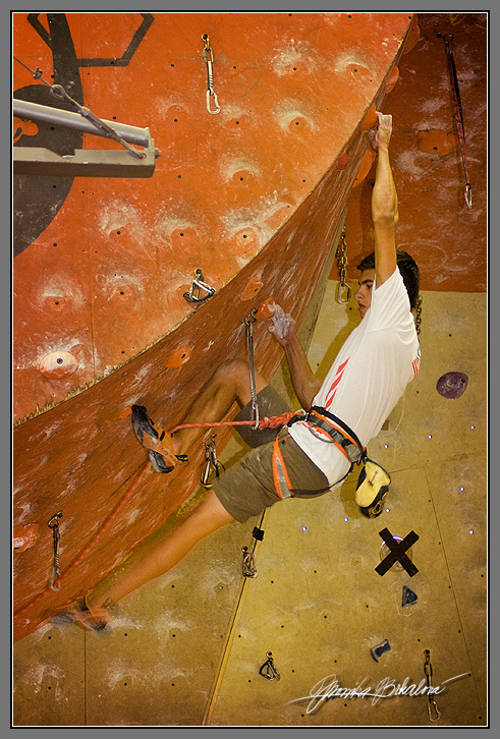 Poslední kvalifikační cestu číslo šest po zelených pravým stropem lezli pouze kluci "reprouši", to znamená B, A a Junioři. Klasifikace 7b+ bez výraznějšího bouldru, pouze cesta říkala – nepovoluj nebo spadneš, fixuj to pořádně! Některým se to dařilo, tak se dolézalo daleko. Ale i zde byl k vidění "pouze" jeden top, ten se podařil specialistovi rychlolezci Honzovi Křížovi. Jenom on skočil na hranu, poté šáhnul do cvakacího chytu a se vší parádou si vychutnal jediný Top!