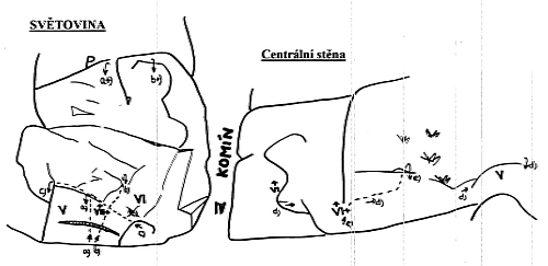 Většina boulderového dění se tu odehrává na převislém pilíři v hlavní stěně, kromě toho jsem našli ještě jeden šutr ve svahu pod vrcholem samotného vrchu Světovina. V lesích okolo bude možná ještě něco.