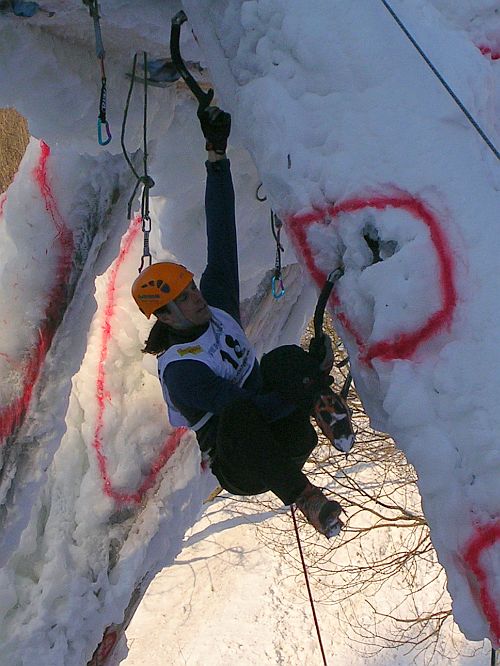 Harald Berger v semifinále závodu Světového poháru v ledovém lezení v Tanvaldském Špičáku, 28. ledna 2006. Semifinále vyhrál a nakonec ve finále skončil tehdy třetí.