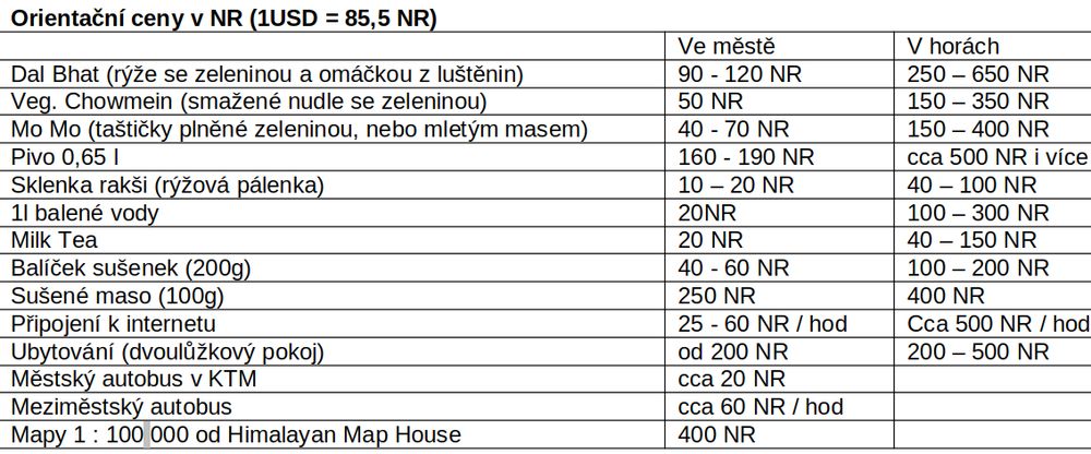 Samozřejmě ceny za jídlo se prudce zdvihají s tím, jak opouštíte místa, kam se dá dostat autem a pak ještě více vystřelí nahoru spolu s nadmořskou výškou, ale uvědomte si, že většinu toho sem musí donést na zádech nosiči, karavany oslíků, nebo yaků. Ušetřit můžete, když si něco odnesete sami, třeba nějaké sušenky se určitě budou hodit a vzhledem k většinovému zastoupení vegetariánské stravy v jídelních lístcích nezapomeňte ani na sušené maso.