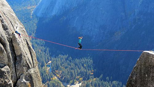 Yosemite Waterfall Line 39m dlouhá 300 až 500 metrů vysoko