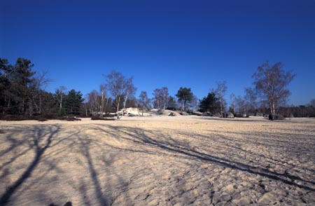 Procházíme vřesovišti až na samý vrchol pískovcového masivu. Na vrcholcích kamenů jsou zamrzlá jezírka. Pokračujeme soutěskou dolů k velkému písečnému moři, které vypadá jako poušť. Nemaje žádné pořádné mapy oblasti trochu bloudíme, ale nakonec se konečně dostáváme do náčelníkem vytoužené oblasti. Jedná se o oblast 95.2 a musím uznat, že kameny zde přítomné působí vskutku majestátně. Slunce svítí, ale skála je velmi studená. Náčelník však neváhá a na rozehřátí vyleze několik poměrně vysoko klasifikovaných cest. Jak tam tak pobíhá a zkouší různé chyty, studuje průvodce, nedá mi to a také oblékám lezačky. Zkouším dvě poměrně jednoduché cesty, které si mi zdaří vylézt (klasifikaci raději ani nebudu uvádět abych vás zbytečně nerozesmíval). Skála je vskutku velice studená, takže zpět do rukavic a dále již se věnuji jenom focení. I zkušená Jana shledává skálu studenou a veškeré lezecké pokusy odkládá na zítřek. Náčelník si dá ještě několik 6 áček a pak se již zase vracíme krajinou zalitou paprsky zapadajícího slunce zpět. Náčelník si neustále stěžuje, že dneska to bylo houby lezení, že musíme zítra hnedka od rána na pořádnou skálu a ne to takhle lechtat. Na parkovišti nám Jana připraví výborné jídlo na téměř prázdné plynové bombě, která v této kose odmítá odpařovat plyn.