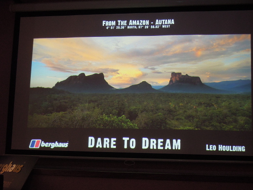 Hovořil nejprve o práci na filmu The Wildest dream (2010), kde si s neméně známým americkým horolezcem Conradem Ankerem ve starých hadrech střihnul roli George Malloryho a Andrewa Irvina, kteří se pokusili o výstup na Everest v roce 1924. No, alespoň mohli porovnat tehdejší podmínky lezení. Ale takový expediční styl zřejmě pro Lea není to pravé, takže nám pustil ukázku ze svého lezení a následného sletu do údolí ve wingsuit (ostatně možná jste viděli i fim Asgard project). Na druhou stranu Leo Houlding ze svých největších výstupů vozí i vynikající filmy a fotografie, tekže některé délky prvovýstupů museli lézt často druhý den znovu, jelikož kameraman (např. Alastair Lee) s nimi lezl zdola. A také například mnoho kamer, fotoaparátů a stativů pro několik terabytů dat pro film zabralo celý jeden stan.