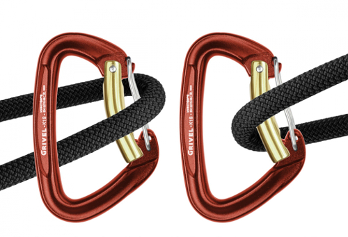 Jedná se o karabiny, které mají "dvě brány" a dvě západky karabiny (dříve zámek karabiny) otočené proti sobě, které se otevírají jedna ven a druhá dovnitř. Taková ta pojistka - šroubovací nebo bajonet ale chybí.