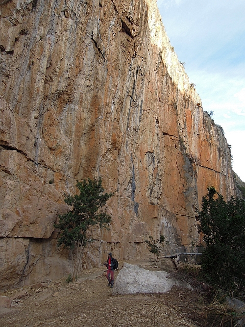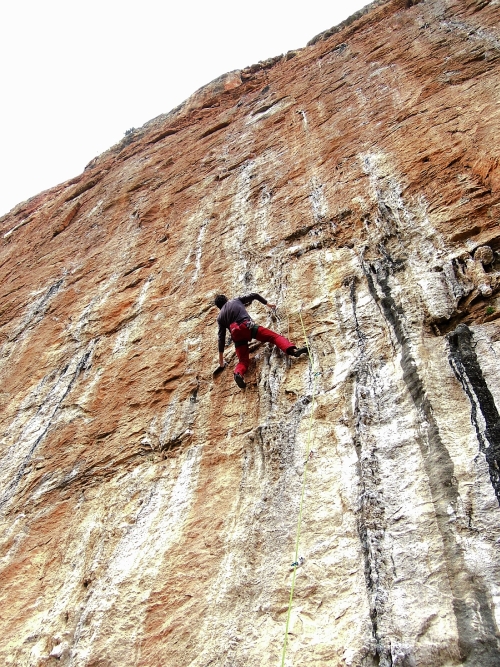 Nechci generalizovat, lezli jsme tam vlastně jen pár cest, ale především první den, kdy jsme se rozlézali v sektoru Oasis na těch úplně nejlezenějších 7áčkách oblasti, jsem si plně uvědomil, že tohle je lezení, co mě vůbec nebaví. 30-40 metrů dlouhé cesty a v nich málo lezení a hodně omáčky, tedy v praxi pár bouldrů a mnoho metrů 6áčkové obtížnosti v kolmici. Takže v cestách člověk více vyklepával, než lezl. A když lezl, tak spíše tak, že se strachoval, aby mu neusmeklo, než že by souvisle lezl a natejkalo mu. Jedinou výjimkou toho dne byla parádní cesta „plan zeta“, která je sice taky kolmá, ale posledních 20 metrů se opravdu leze v kuse.
