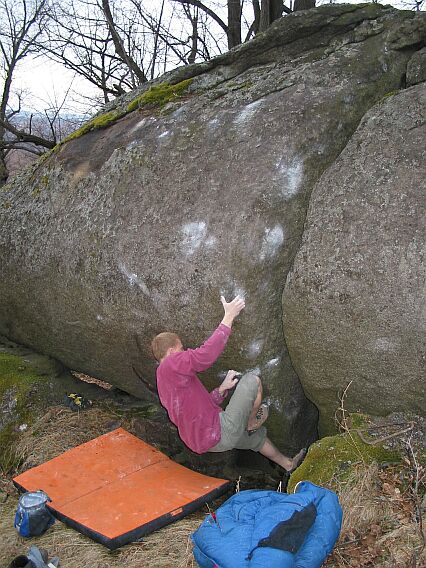 tak to je šutr, který se povedl, nástup z převisu a poté těžké výlezy, jednotlivé bouldery zleva doprava